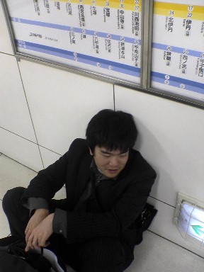 ←飲みすぎて北新地駅にまたーりと座り込むかつせかうーめん大臣