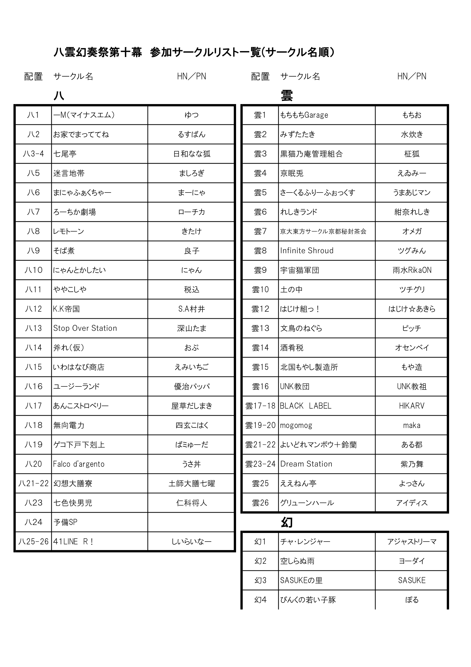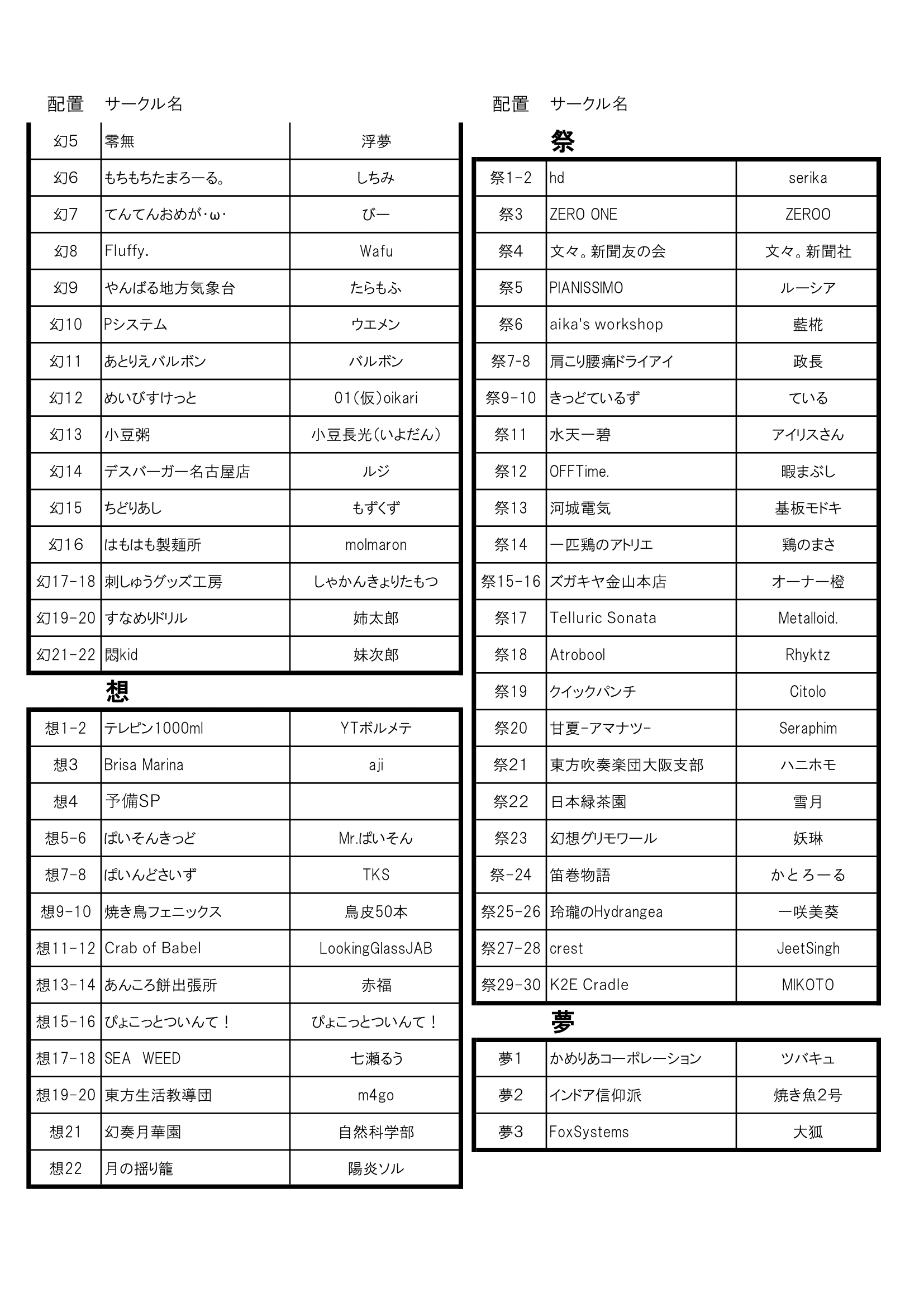 【サークル一覧配置順】